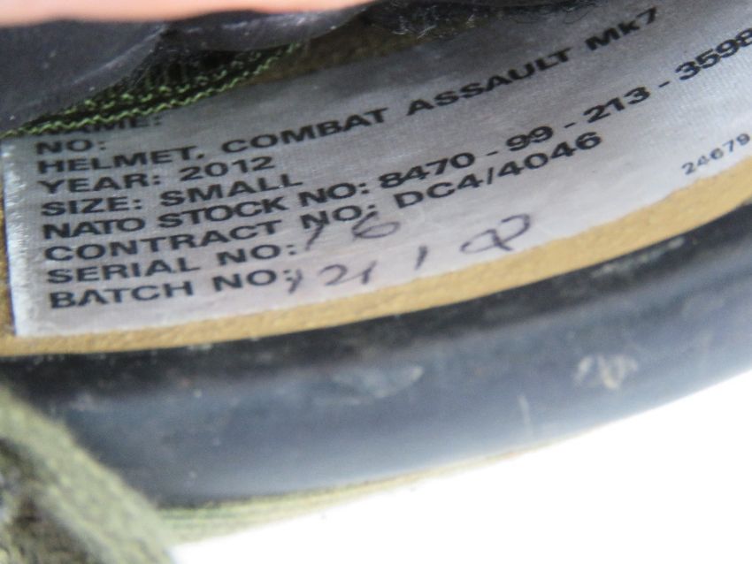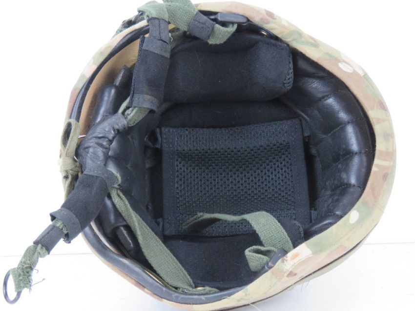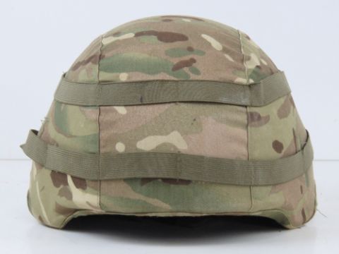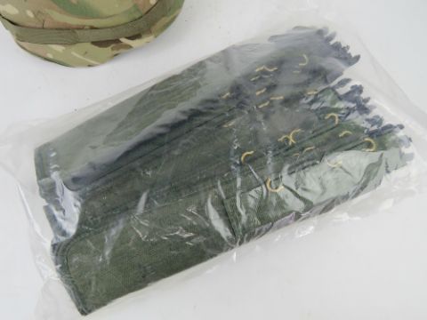 A British Military MK7 helmet with MTP helmet cover, size small. Together with ten SA80 scabbards 'as new' in packet.