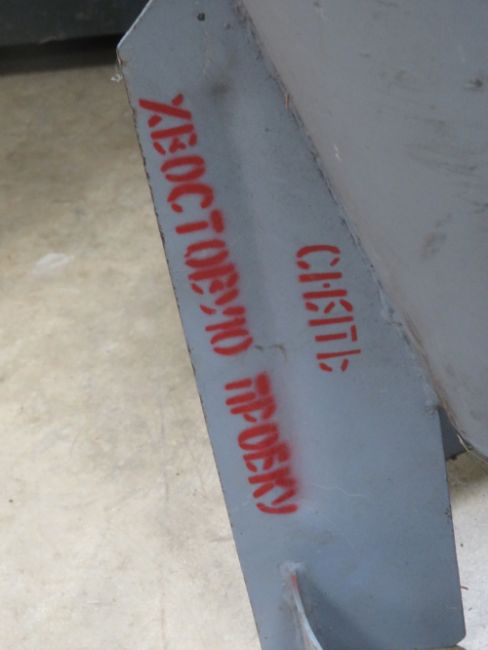 An inert Cold War Era Russian Air Force, 50kg PLAB Anti Ship Bomb. Dropped from Jet or Helicopter at sea onto deck or path of Large Boat. Having Military Stencilling upon.