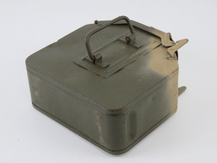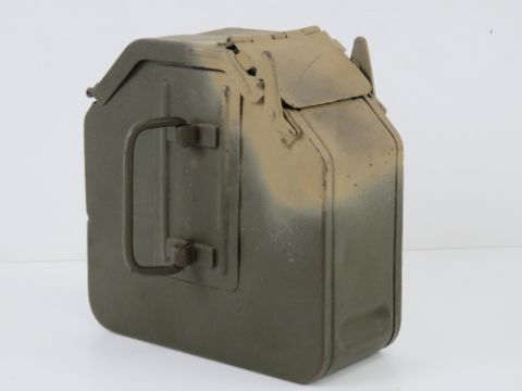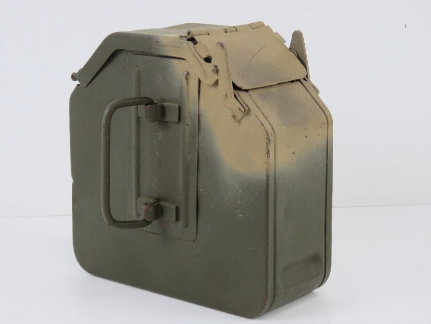 A WWII German MG34 75rd magazine, repainted, dated 1941, makers mark indistinct (brc?).