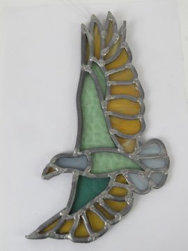 A contemporary leaded glass hanging Peace Dove, 26cm wide.