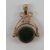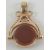 A delightful 9ct rose gold double sided spinning fob pendant set with carnelian and bloodstone, hallmarked 375, 2.5cm in lenght.