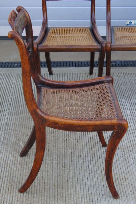 A set of four late 19thC rosewood dining chairs each with Berger seat support and having inlaid brass decoration to the splats.