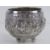 An antique Burmese white metal thabeik bowl (based on Burmese monks' begging or alms bowls) raised over three ball feet, decorated in high relief with scrolling foliate borders and figures in traditional dress, no apparent hallmarks or makers marks, 10cm dia, 237g / 7.6ozt