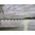 Acrylic on board, unknown artist, dusky lakeside scene, bridge and mountains beyond, 30 x 24cm.