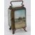 A late Victorian pocket watch holder, French made with bevelled glass and ormolu having painting on glass of Redcar Pier in North Yorkshire, original silk lining within a/f as commensurate with age, inscribed to back and dated 1897?, standing 11.5cm high.