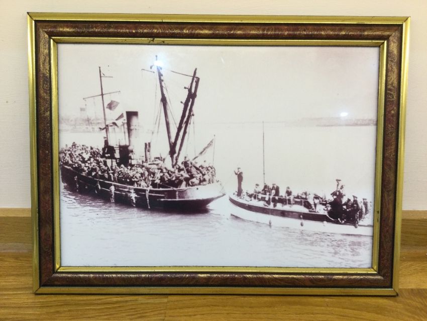 The original ships wheel from one of the Dunkirk 'Little Ships' Lady Rhonda Maine. Built C 1919 (wheel bears this date) in a boat yard in Walton-on-Thames. No known history up until 1940 when she became one of the 'little ships' that sailed to Dunkirk for the historic rescue. Sadly suffering engine failure on her return and was towed back to England. Languishing for many years in Lake Yard in Hamsworthy, Dorset and passing through several owners, the last of which was a Mr Schmitt who cut his losses and broke her up, saving the wheel together with a photographic print taken on 1940. 90cm diameter, handle to handle. An important and historic artefact.