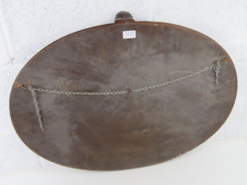 A good mahogany framed bevelled edge oval wall mirror with shell crest over, 77 x 55cm.