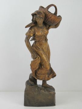 An Austrian Art Nouveau Goldscheider terracotta figuring 'Girl carrying basket' designed by B Haniruff c1900, standing 46cm high.