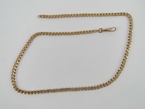 A 9ct rose gold watch chain, flattened curb link with clasp attached, hallmarked 375, total length 53cm, 12.3g.