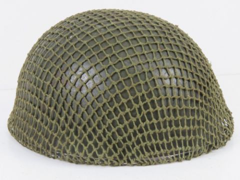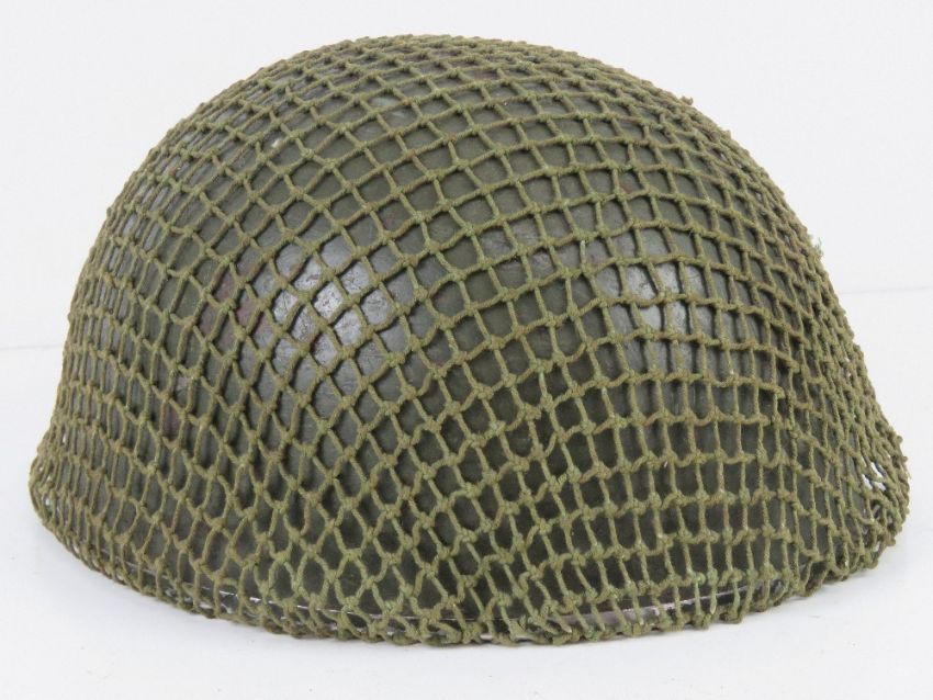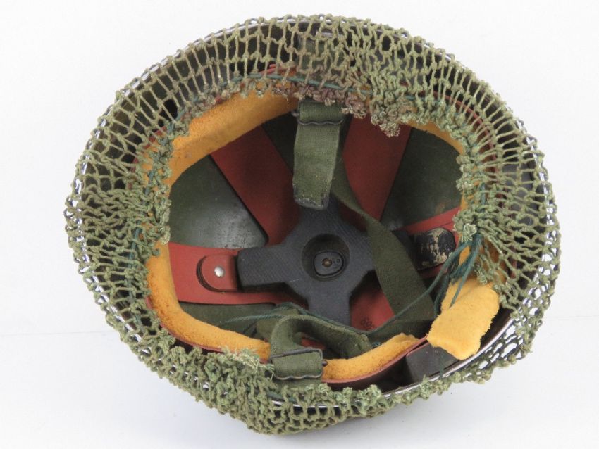 A British Paratrooper's helmet with liner and helmet net, dated 1983.