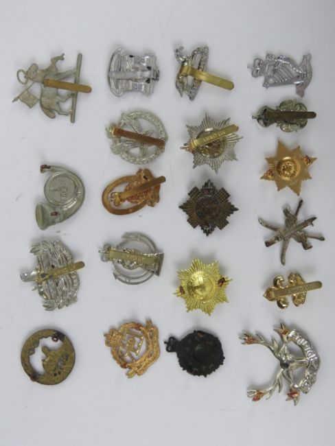 A quantity of assorted British regiment cap/helmet badges, approx 20 items, inc Royal Irish Rangers, Cheshire Regiment, Gloucestershire Regiment, Queen's Lancashire Regiment, Royal Military Police, etc.