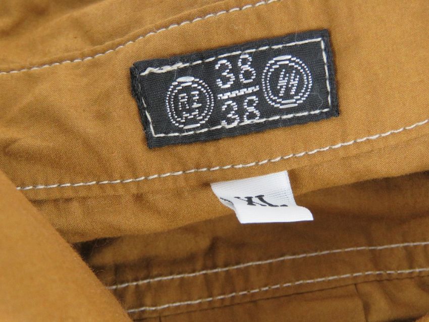Assorted repro clothing, WWII British Leather Jerkin Size 3, German SA Shirt size XL, Shirt size XL, helmet cover, snood.