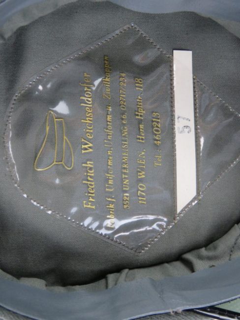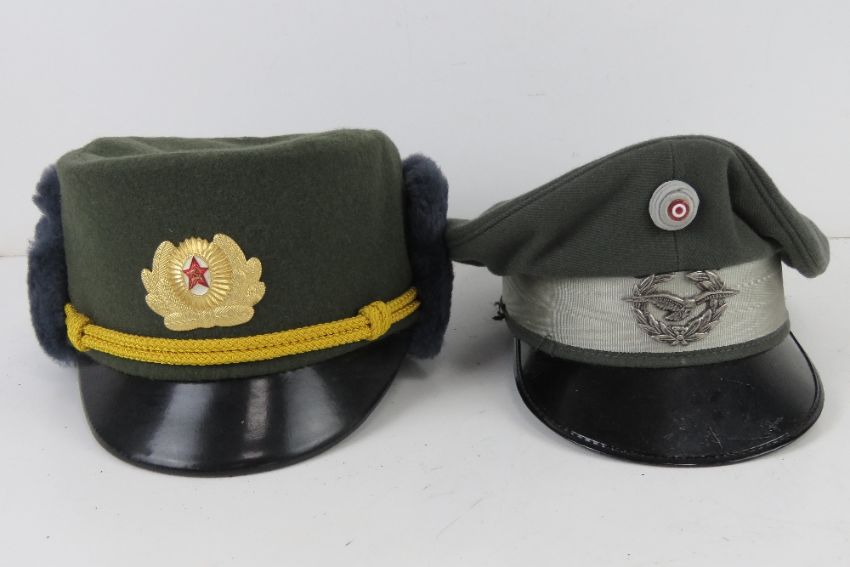 A Royal Marine dress cap (no badge, size 55), a French Foreign Legion Kepi (size 58 ½), a Russian winter cap and an Austrian Air Force dress cap (size 57).