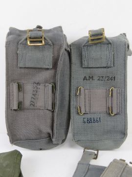 Four WWII RAF webbing pouches together with a Browning High Power holster. Five items.
