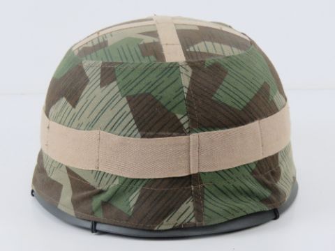 A reproduction WWII German Fallshirmjager (paratrooper) helmet with helmet cover and liner.