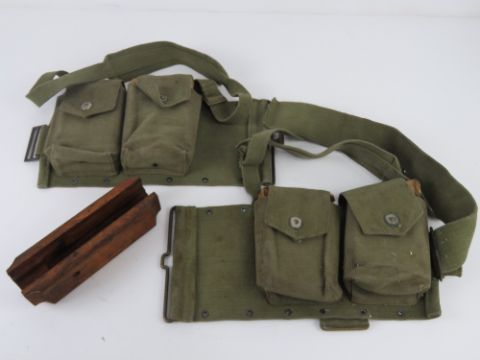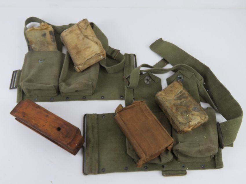 Four US BAR magazines in canvas pouch, un-issued, with BAR wooden foregrip.