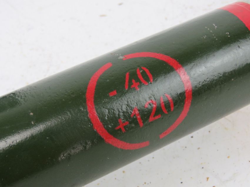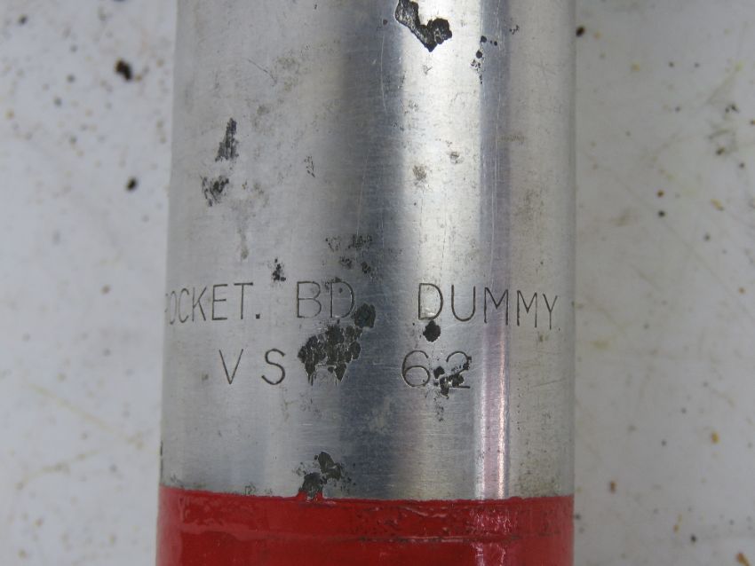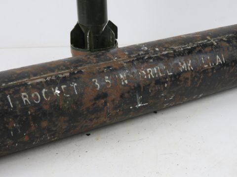 An inert Panzerfaust rocket in transit case, 3.5 in HEAT UK M28 MK 1/1 RDX/TNT. Total length 64cm.