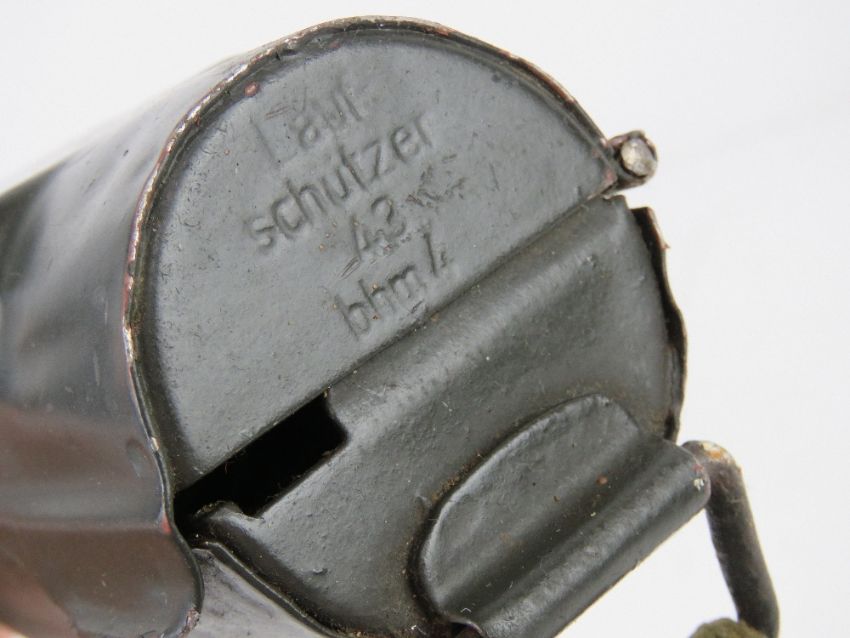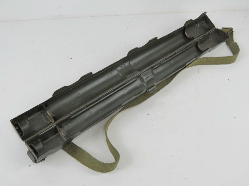 A WWII German MG42 spare barrel transit case, with carry strap, dated 43.