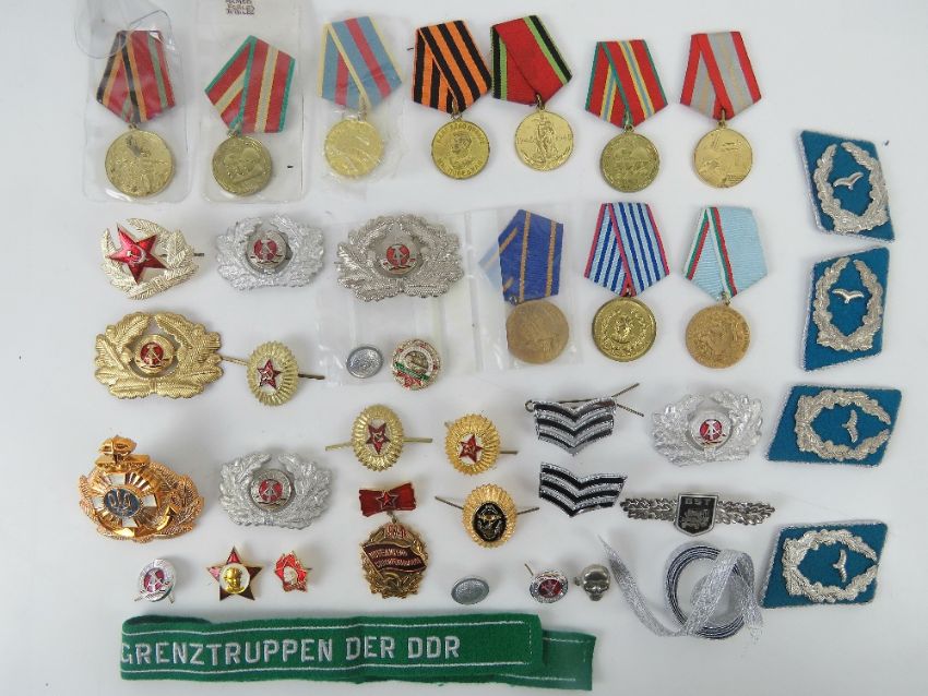 A quantity of assorted Russian and DDR badges and medals, approx 39 items.
