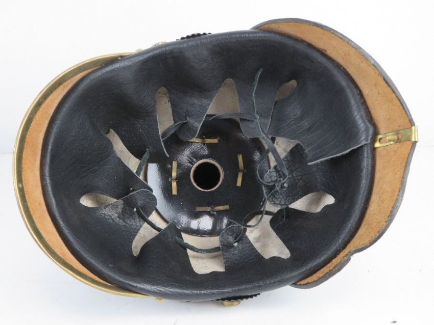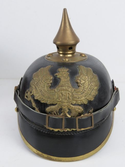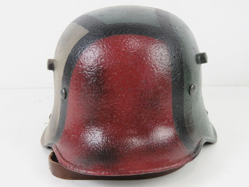 A reproduction WWI German pickelhaube helmet and liner, together with a reproduction repainted German WWI M16 helmet and reproduction liner.