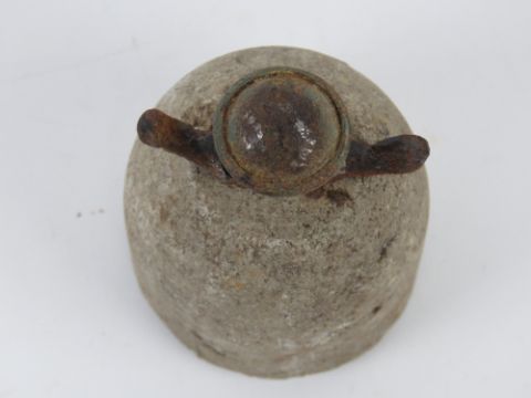 An inert WWII German concrete AP mine having egg grenade fuse.