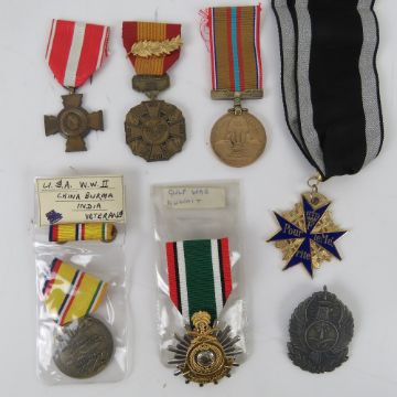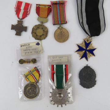 A quantity of assorted military medals inc; Gulf War Liberation of Kuwait, Veteran's medal, Suez Canal medal etc. Seven items.