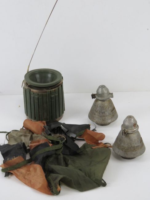 An inert unfired U.S Military MK-149 aircraft fuse for the 3.5” and 5” General Purpose Fin Stabilised Aircraft Rocket, having safety cover and stamped NF MK149. Together with an inert AT2 Anti-Tank mine, used by the British, German and Norwegian forces. Two items.