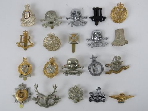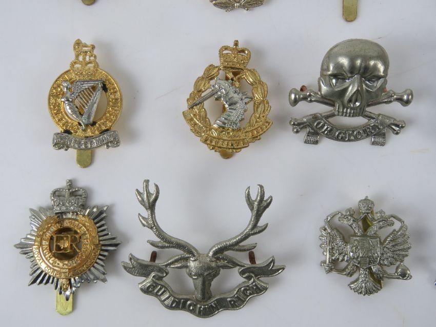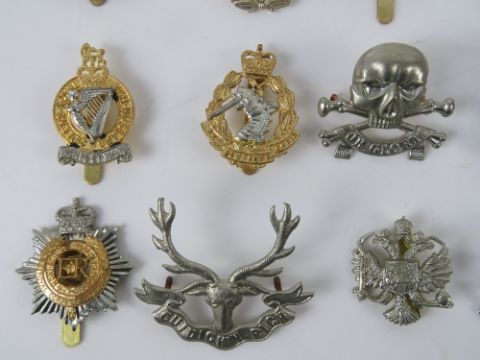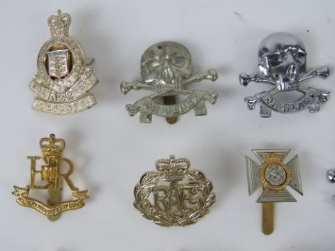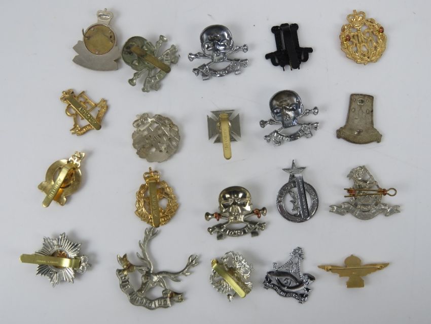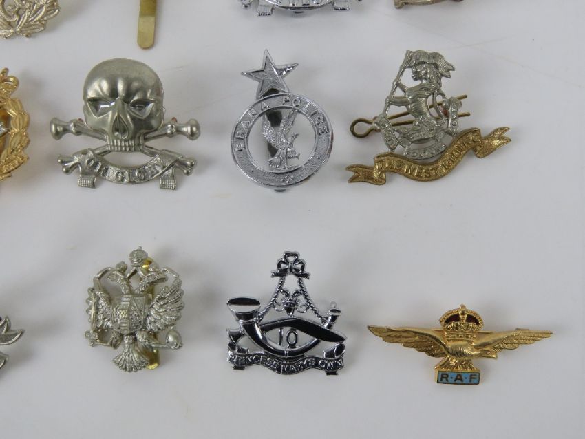 A quantity of assorted British regiment cap/helmet badges, approx 20 items, inc RAF, Queen's Royal Irish Hussars, Princess Mary's Own, West Riding, etc.