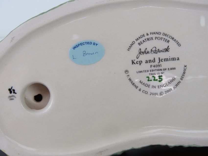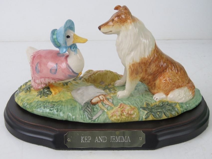 Royal Doulton John Beswick Beatrix Potter; 'Kep and Jemima', Ltd Edition modelled by Martyn Alcock, No 225, with certificate and box, approx 20cm wide.