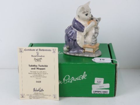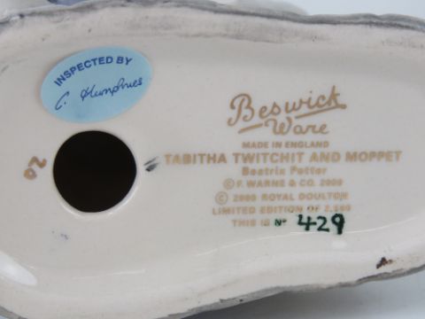 A Royal Doulton Beswick Ware, Beatrix Potter; 'Tabitha Twitchett and Moppet', large size gold edition for the Royal Doulton International Collector's Club, Limited Edition no 429. 10.5cm wide. With box and certificate.
