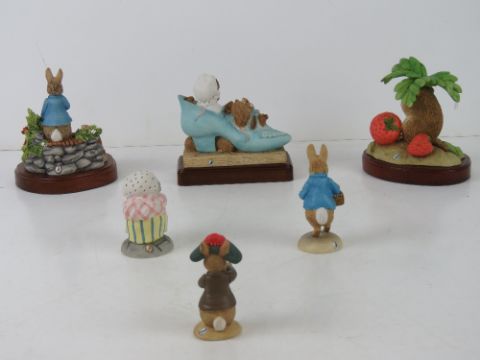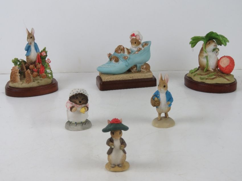 Border Fine Arts/Enesco Beatrix Potter; Six Club Member figurines in boxes being, 'Peter Rabbit with Onions', ' Old Woman who Lived in a Shoe', 'Timmy Willie with a Strawberry', etc.