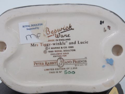 Royal Doulton Beswick Ware, Beatrix Potter; Mrs Tiggy-Winkle and Lucie, Limited Edition tableau, made for the Royal Doulton International Collector's Club, P3867, No 500, with certificate and box, approx 12.5cm wide.