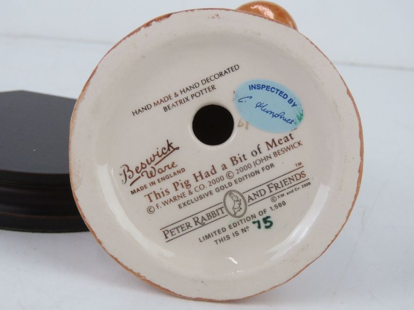 Royal Doulton Beswick Ware Beatrix Potter; 'This Pig had a bit of Meat' P4030, made for the Peter Rabbit and Friends, Royal Doulton International Collector's Club, Limited Edition no 75, approx 10cm high. With certificate and box.