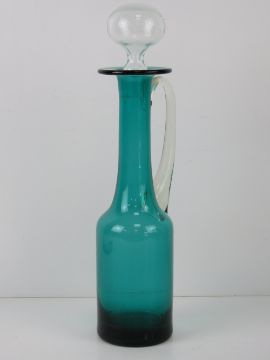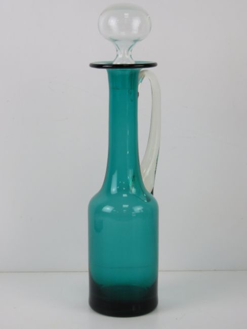 A turquoise and clear glass claret jug standing 39cm high.