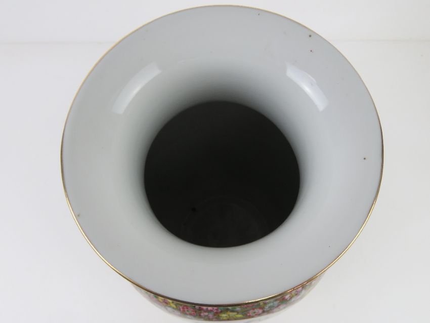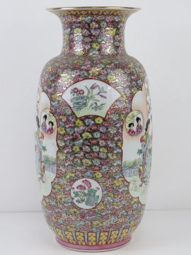 A large Chinese shoulder vase having female figures upon with pink and blue floral decoration and standing 44cm high.
