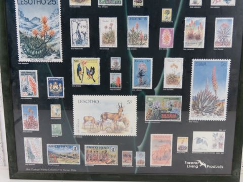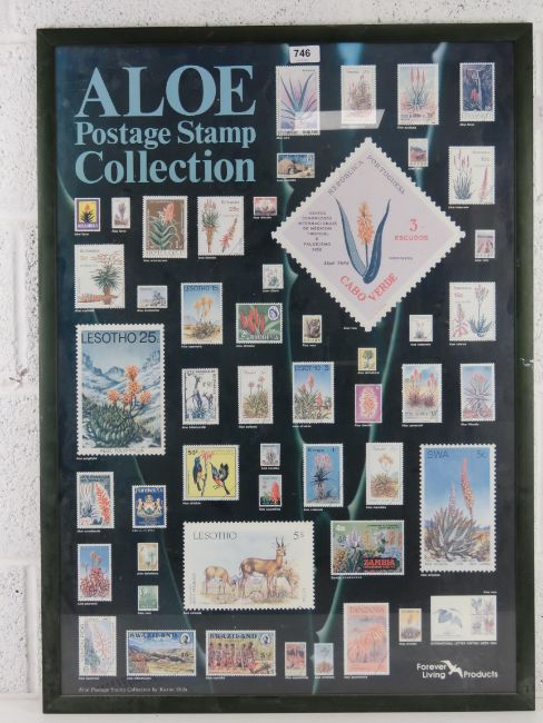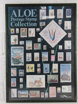 A framed Aloe postage stamp collection poster measuring 88 x 63cm.