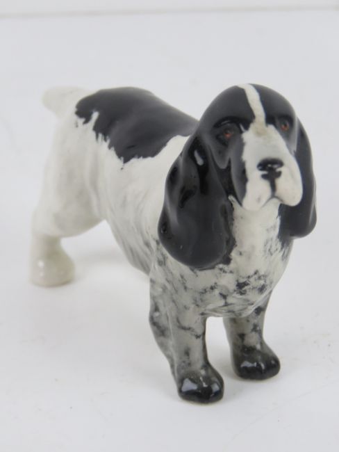 A Doulton Springer Spaniel, 7cm high, together with another Springer Spaniel, larger and unmarked. Two items.