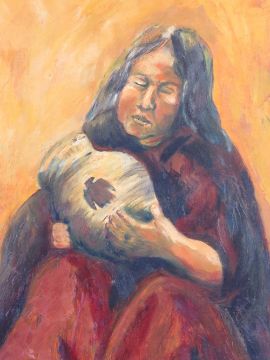 Oil on board; Indian pot maker, signed lower left Janette with inscription verso, sight size 48 x 40cm, framed.