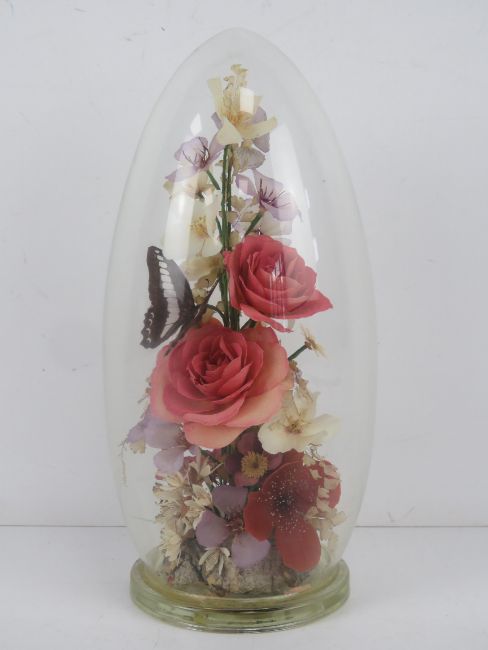 A 'captive garden' by Michael R Curzon having flowers and butterfly within, standing 30cm high.