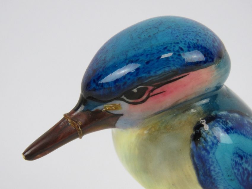 A rare Royal Doulton seating Kingfisher figurine having green backstamp, a/f to beak (would stand a professional repair), 10.5cm high.