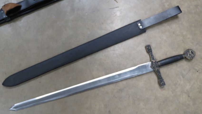 A reenactor Medieval style sword measuring 41.5 in length.