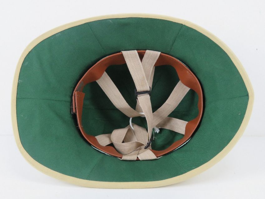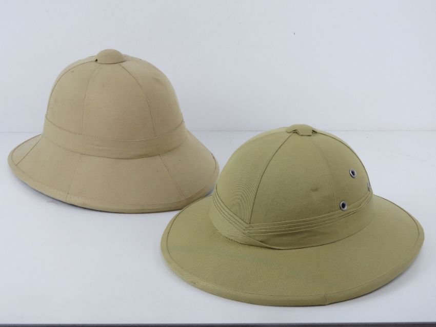 Two contemporary Pith helmets, one bearing German label within, one made in Vietnam.