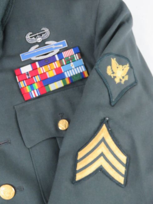 A WWII US Infantry Jacket with insignia, size 36 regular, together with a US parade shirt.