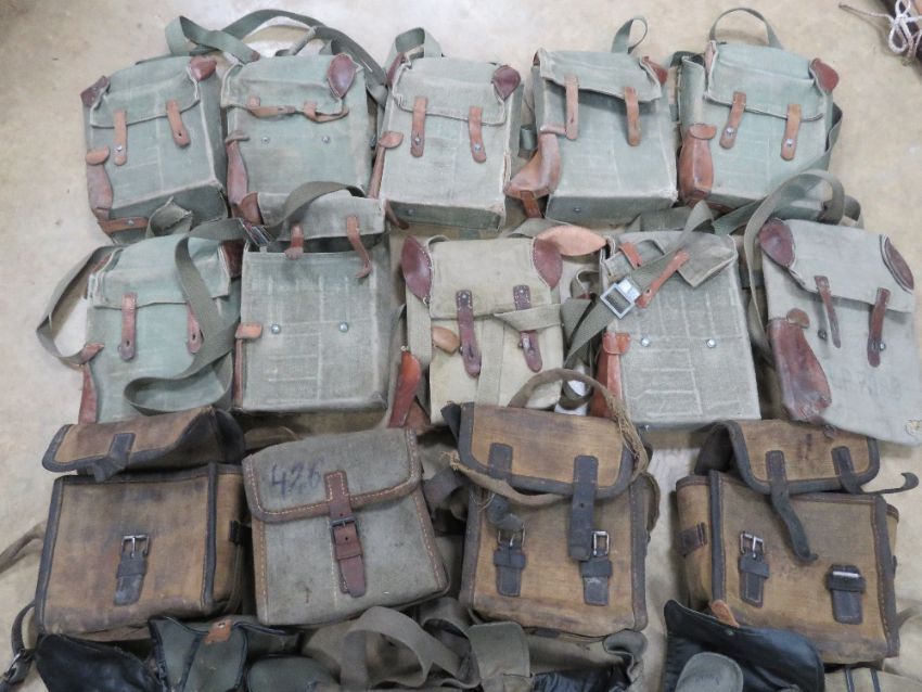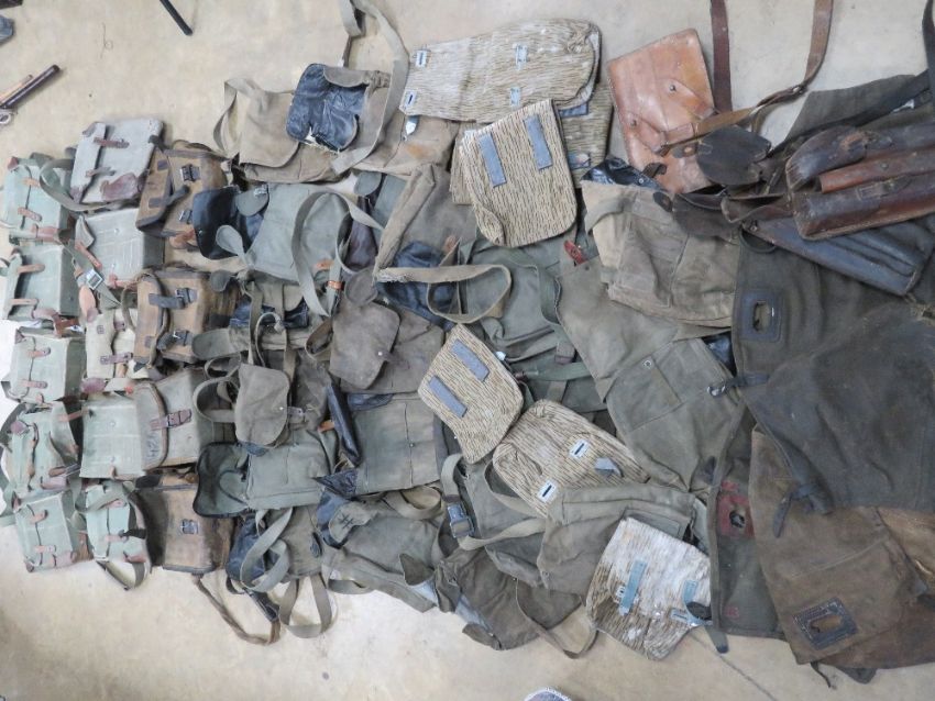 Fifty assorted cold war era magazine pouches, loader bags, breech covers.