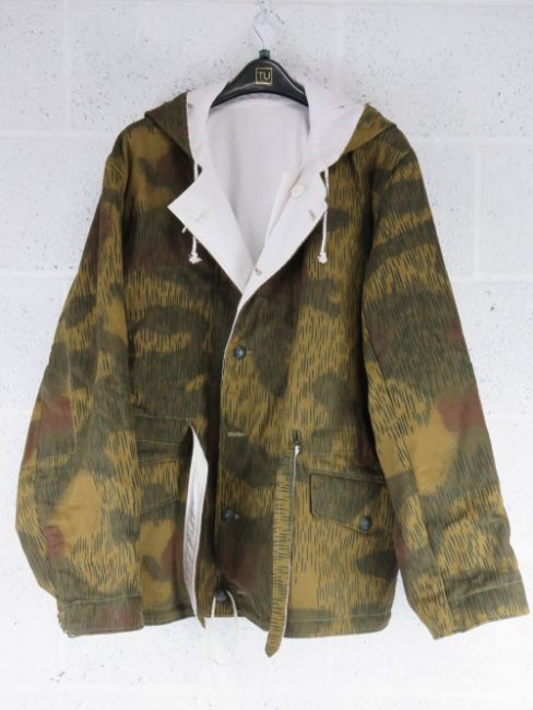 A repro WWII German Winter Parka in splinter camouflage. Size XL.