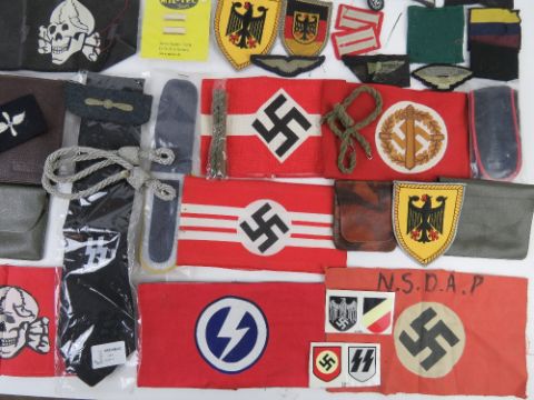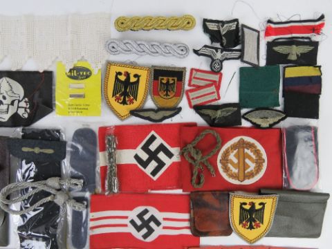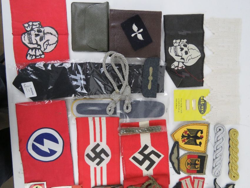 A quantity of assorted German items, armbands, wallets, cloth badges, tie, shoulder boards. (41 items).