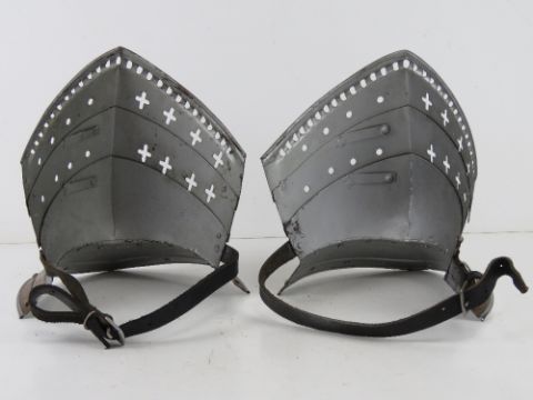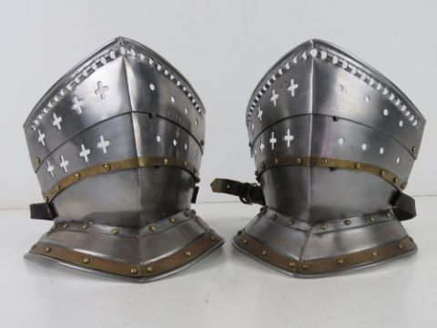 Two reenactors Medieval knights style protective amour - neck/lower face sheild