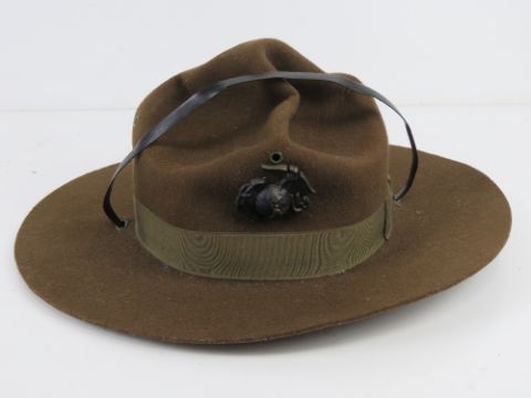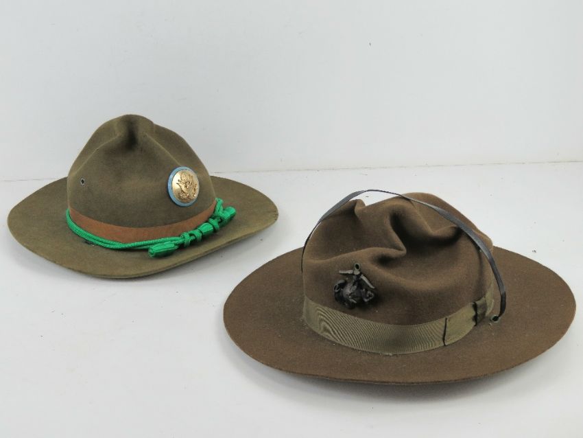 A vintage US army drill sergeant's campaign hat together with a US Marine Campaign hat (size 58).