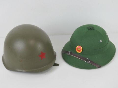 Two reproduction WWII Russian hats being a Red Star Pith helmet (size 58) and a Russian Red Star Pith helmet.