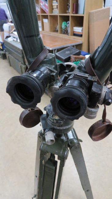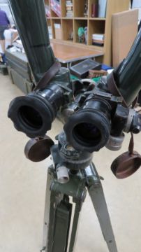 Post WWII German 'Bunny ears' type military binoculars on tripod.